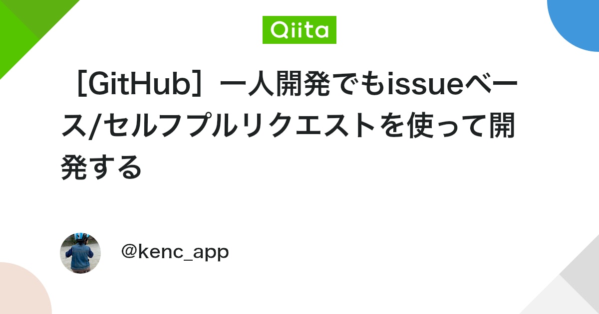 [GitHub]一人開発でもissueベース/セルフプルリクエストを使って開発する - Qiita