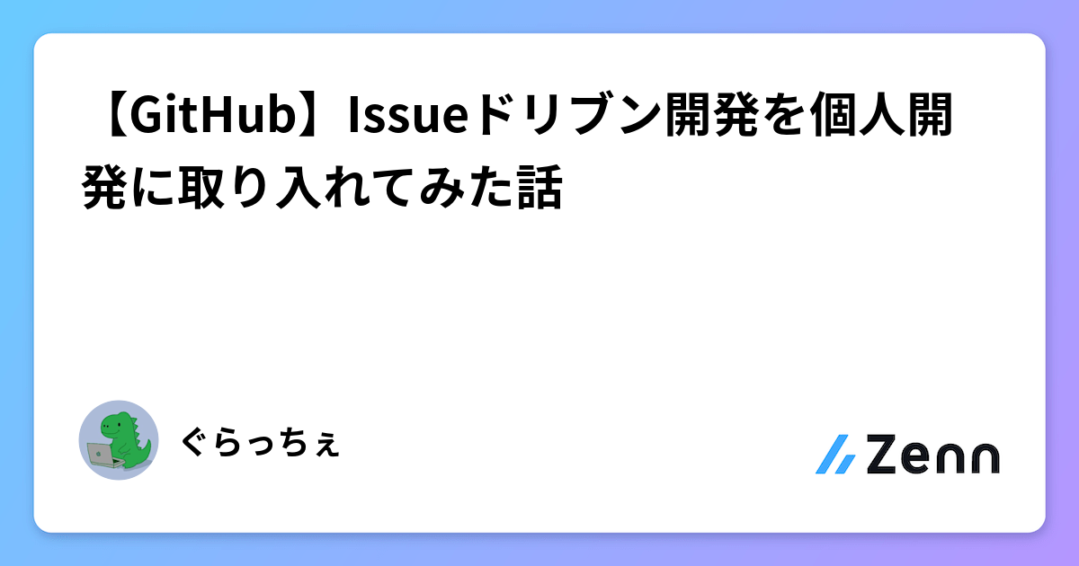 issueベース開発 サンデープログラマーにとってGitHubはmasterブランチで実装したものをpushしておくだけ。 いわばただのバックアップ置き場になっている事も多いでしょう...