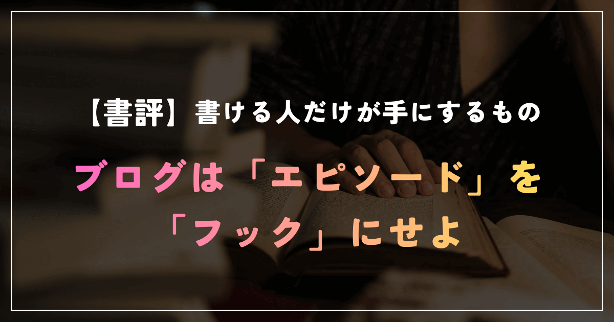 エピソードを書くだけでは記録文の域を出ないけれど、そのエピソードをフックとして自分の考えを引っかければ、読者の共感や納得を得られる文章になる。(引用:書ける人だけが手にするもの , 位置:557)